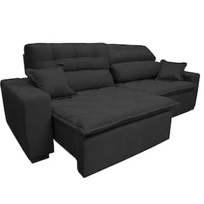 Sofá 2,92m Retrátil E Reclinável Com Molas Cama Inbox Confort Tecido Suede Velusoft Preto