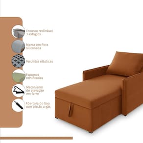 Sofá 3 em 1 Chaise, Cama e Baú Neve Estofama - Laranja