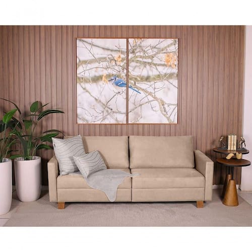 Produtos Entregues: 1 Sofá + 2 Almofadas (Os objetos que ambientam as fotos não acompanham o produto);