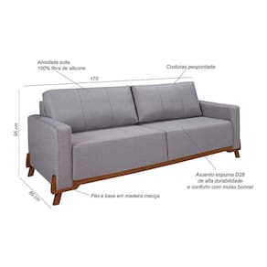 Sofá Maldivas é no estilo Living, almofadas soltas em fibra de silicone, assento com espumas D28 de alto conforto, percintas elástica e molas bonel, revestimento em linho com costuras pespontadas, base e pés em madeira maciça, estrutura em madeira de reflorestamento Produto Montado: Sim Acompanha Almofadas extras: Não Almofada do assento: Fixa Almofada do encosto: Removível Altura do assento até o chão: 50.0000 Altura do Encosto: 45 cm Altura dos Pés: 13 cm Ambiente Principal: Sala de Estar codigo_ean: 7909903215876 Complexidade da Montagem: Baixa: pode ser montado por uma pessoa sozinha Cor: Grafite Cor do Produto: Grafite Densidade do Assento: D-28 Densidade do Encosto: Camadas de Densidades Diferentes Enchimento do Assento: Espuma Enchimento do Encosto: Fibra Siliconada Estilo de Braço: Braços Quadrados Itens Inclusos: 1 Sofá Linha ou Coleção: Linha Material dos Pés: Madeira Maciça Montagem Flex: Não Necessita Montagem: Sim Origem do Produto: Nacional Peso: 50 kg Pet Friendly: Não Possui Percintas Elásticas: Sim Possui Pés: 04 Possui Rodízio: Não Recomendações de Uso, Manutenção e Limpeza: Não usar nenhum tipo de produto químico, somente pano seco ou levemente humedecido com agua. Sistema de Montagem: Somente fixar os pés Suporta Até (kg): 350 kg Tecido Predominante: Linho Tipo de Encosto: Fixo Tipo de Mola: Molas Bonnel