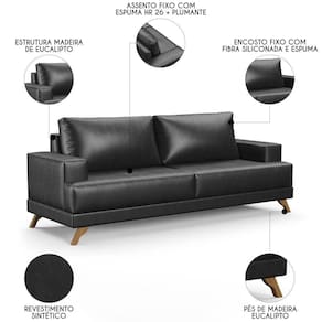 O Sofá 3 Lugares 180cm Living Pés Curvos Santi D05 Sintético Preto, da Mpozenato é para você que não abre mão de qualidade, design e conforto, confira!