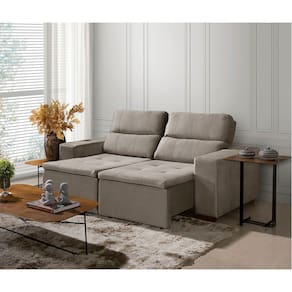 Sofá Modular 3 Lugares Búzios 195cm Com Molas, Retrátil E Reclinável Com Tecido Veludo Nobre Sofatec Bege