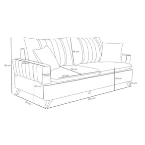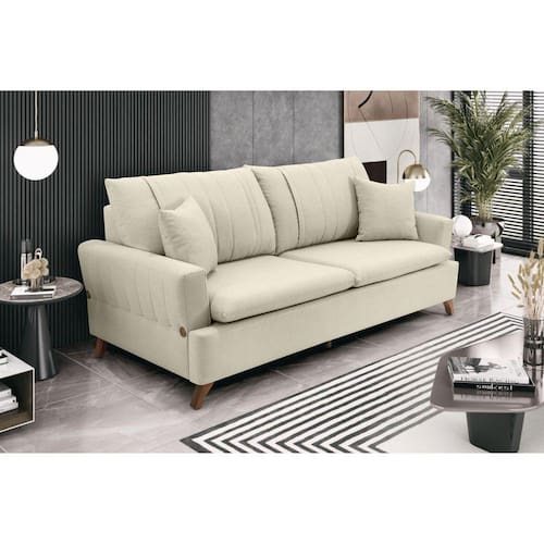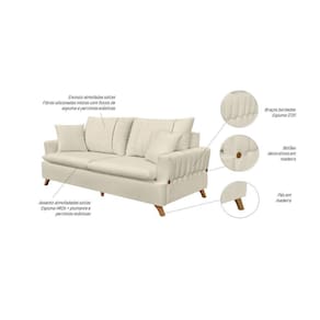 Eras 3 Lugares é um requinte de sofá, estrutura de madeira de eucalipto proveniente de reflorestamento, montagem com grampos galvanizados, encosto fixo com cintas elásticas e almofadas soltas com enchimento de fibra siliconada e flocos de espuma, assento fixo com cintas elásticas e almofadas soltas com enchimento espuma HR 26 plumante. Suporta até 110 kg por assento, braças com espuma D20 e botões decorativos. Revestimento em tecido 66% algodão e 34% poliéster. Pés de madeira. Acompanha 2 almofadas decorativas Acompanha Almofadas extras: 02 Almofada do assento: Removível Almofada do encosto: Removível Altura do assento até o chão: 45 cm Altura do Encosto: 55 cm Altura dos Pés: 10 cm Ambiente Principal: Sala de Estar Cor: Cru Cor do Produto: Cru Densidade do Assento: D-26 Densidade do Encosto: Camadas de Densidades Diferentes Enchimento do Assento: Espuma Enchimento do Encosto: Fibra Siliconada Estilo de Braço: Braços Quadrados Firmeza do Assento: Macio Itens Inclusos: 1 Sofá, 2 Almofadas, Kit Ferragens e Manual de Montagem Manual de Especificação Técnica: https://cdn2.madeiramadeira.com.br/atributo/selvazzano-d-monegatto/936061-montagem-pes-eras.pdf Manual de Montagem e Instalação: https://cdn2.madeiramadeira.com.br/prd/selvazzano-d-monegatto/913564-view-usp-sharing.view%3Fusp%3Dsharing Material dos Pés: Madeira Necessita Montagem: Não Origem do Produto: Nacional Peso: 56 kg Pet Friendly: Não Possui Percintas Elásticas: Sim Possui Pés: 05 Possui Rodízio: Não Recomendações de Uso, Manutenção e Limpeza: Utilizar um pano limpo levemente umidecido, não utilizar produtos químicos Revestimento do Braço: Poliéster com algodão Suporta Até (kg): 110 kg Tamanho: Tecido Predominante: Poliéster Tipo de Encosto: Fixo Tipo de Mola: Não Possui