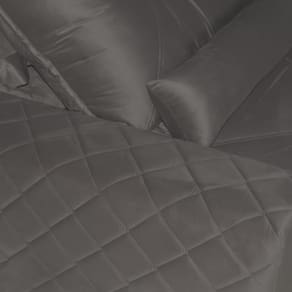 O sofá Átila possui assento retrátil com espuma D33 e molas ensacadas super resistentes em um pillow de 19 cm, encosto regulável por catraca blindada e enchimento das almofadas com fibra siliconada. O tecido possui um toque diferenciado, sendo classificado como Veludo Luxo.