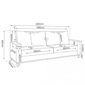 Dimensões: Altura: 86,5 cm Largura: 220 cm Profundidade: 78 cm Peso: 54,00 kg