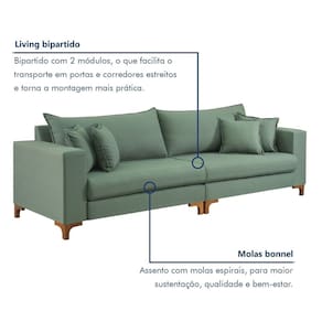 Sim, todas as almofadas são soltas, facilitando a limpeza e o uso. Produto Montado: Sim Acompanha Almofadas extras: 04 Almofada do assento: Removível Almofada do encosto: Removível Altura do assento até o chão: 64.0000 Altura do Encosto: 14 cm Altura dos Pés: 12 cm Altura Máxima dos Pés: 12.0000 Ambiente Principal: Sala de Estar codigo_ean: 7900288122278 Complexidade da Montagem: Baixa: pode ser montado por uma pessoa sozinha Cor: Verde Cor do Produto: Verde Estilo de Braço: Braços Quadrados Itens Inclusos: 1 Sofá e 4 Almofadas Marca: Estofados Martins Material dos Pés: Madeira Maciça Montagem Flex: Não Necessita Montagem: Sim Origem do Produto: Nacional Peso: 86,2 kg Pet Friendly: Não Possui Mola: Sim Possui Percintas Elásticas: Não Possui Pés: 08 Possui Rodízio: Não Recomendações de Uso, Manutenção e Limpeza: Não use produtos químicos, eles podem danificar o revestimento; Sistema de Montagem: Kit de Parufusos e Pés. Suporta Até (kg): 120 kg Tecido Predominante: Linho Tipo de Encosto: Fixo Tipo de Mola: Molas Bonnel Tipo de Sofá: Sofá Comum Marca: Estofados Martins