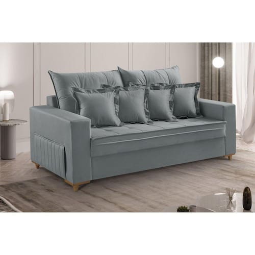 Se você busca por um sofá com estilo moderno e confortável para transformar sua sala de estar, vai se apaixonar pelo Sofá Beny. Com 3 lugares, ele é aconchegante e possui um visual que vai elevar a decoração do espaço para outro nível. Os pés em madeira maciça e as almofadas dão um toque todo especial no sofá. Perfeito para que busca estilo e conforto! Acompanha Almofadas extras: 04 Almofada do assento: Fixa Almofada do encosto: Removível Altura do assento até o chão: 42 Altura do Encosto: 60 Altura dos Pés: 8 Ambiente Principal: Sala de Estar Cor: Cinza Cor do Produto: Cinza Densidade do Assento: D-26 Densidade do Encosto: Camadas de Densidades Diferentes Enchimento do Assento: Espuma Enchimento do Encosto: Fibra Siliconada Estilo de Braço: Braços Largos Firmeza do Assento: Médio Informações Complementares: Almofadas Inclusas Itens Inclusos: 1 Sofá e 4 Almofadas Linha ou Coleção: Beny Material dos Pés: Madeira Maciça Montagem Flex: Não Necessita Montagem: Não Origem do Produto: Nacional Peso: 85 Pet Friendly: Não Possui Percintas Elásticas: Sim Possui Pés: 04 Possui Rodízio: Não Recomendações de Uso, Manutenção e Limpeza: Utilizar pano seco. Revestimento do Braço: Suede Suporta Até (kg): 120 Tecido Predominante: Suede Tipo de Encosto: Fixo Tipo de Mola: Molas Bonnel Marca: Vicam Estofados