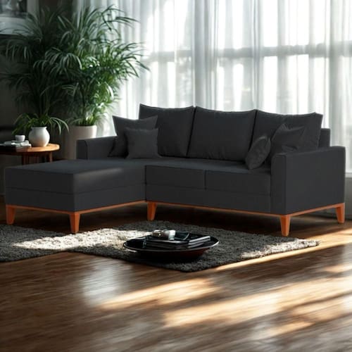 Montagem: O produto vai montado, apenas rosquear os pés e encaixar a Chaise no Sofá na peça lateral.