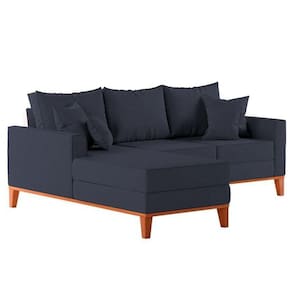 Montagem: O produto vai montado, apenas rosquear os pés e encaixar a Chaise no Sofá na peça lateral.