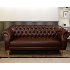 Possui a estrutura em eucalipto tratado, seco e imunizado, travamento da estrutura por grampos fixados com grampeadores pneumáticos. Espuma D28 - 8 cm para o assento e espuma D28 - 5 cm para o encosto e braços. Tornando um produto de longa durabilidade. Acompanha Almofadas extras: Não Almofada do assento: Fixa Almofada do encosto: Fixa Altura do assento até o chão: 43 Altura do Encosto: 42 Altura dos Pés: 17 Ambiente Principal: Sala de Estar Complexidade da Montagem: Baixa: pode ser montado por uma pessoa sozinha Cor: Marrom Cor do Produto: Marrom Densidade do Assento: D-28 Densidade do Encosto: D-28 Enchimento do Assento: Espuma Enchimento do Encosto: Espuma Estilo de Braço: Braços Redondos Firmeza do Assento: Médio Itens Inclusos: 1 Sofá, Manual de Montagem Linha ou Coleção: Duque Manual de Montagem e Instalação: https://cdn2.madeiramadeira.com.br/atributo/zurc-interiores/1526901-pe-s-de-madeira-sofa-3-lugares-link.pdf Material dos Pés: Madeira seca e tratada Necessita Montagem: Sim Origem do Produto: Nacional Peso: 60 Pet Friendly: Não Possui Percintas Elásticas: Sim Possui Pés: 04 Possui Rodízio: Não Recomendações de Uso, Manutenção e Limpeza: Utilizar aspirador de pó, escova com cerdas macias ou limpeza a seco. Não utilizar produtos químicos, abrasivos ou limpeza a vapor. Evitar exposição prolongada ao sol. Revestimento do Braço: Couro sintético Sistema de Montagem: Encaixe dos pés Suporta Até (kg): 360 Tecido Predominante: Couro Sintético Tipo de Encosto: Fixo Tipo de Mola: Não Possui Marca: Zurc Decor Ean: 7909903426357