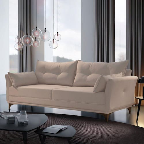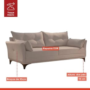 O que acha de deixar o seu momento de lazer ou descanso ainda mais agradável com o confortável sofá M97 ele é perfeito para deixar a sua casa completa e garantir momentos relaxantes até mesmo após aquele dia estressante de trabalho! O móvel deixa o ambiente muito mais aconchegante e sofisticado. Com design charmoso, agrega uma decoração mais elegante e luxuosa ao espaço. Agora é só reunir o pessoal e aproveitar! Acompanha Almofadas extras: 02 Almofada do assento: Fixa Almofada do encosto: Removível Altura do assento até o chão: 40 Altura do Encosto: 50 Ambiente Principal: Sala de Estar Cor: Linho/Bege Cor do Produto: Linho/Bege Densidade do Assento: D-28 Densidade do Encosto: D-18 Enchimento do Assento: Espuma Enchimento do Encosto: Fibra Siliconada Estilo de Braço: Braços Redondos Firmeza do Assento: Macio Informações Complementares: Assento fixo com molas bonnel entrelaçadas com percintas elásticas. Itens Inclusos: 1 Sofá Linha ou Coleção: M97 Material dos Pés: Alumínio Necessita Montagem: Não Origem do Produto: Nacional Peso: 87.5 Pet Friendly: Não Possui Percintas Elásticas: Sim Possui Pés: 04 Possui Rodízio: Não Recomendações de Uso, Manutenção e Limpeza: Limpar com flanela limpa e seca. Não usar produtos abrasivos. Revestimento do Braço: Linho Suporta Até (kg): 180 Tecido Predominante: Linho Tipo de Encosto: Fixo Tipo de Mola: Molas Bonnel