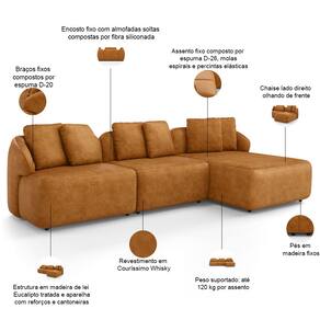 Sofá modulado contendo: 01 assento com braço, 01 assento sem braço e 01 chaise.
