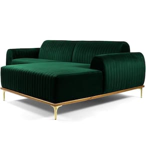 Sofá 3 Lugares Com Chaise Direito Para Sala Molino 230 Cm D02 Veludo Verde Musgo C-303 -lyam Decor