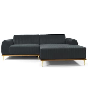 Sofá 3 Lugares Com Chaise Direito Para Sala Molino 245 Cm D02 Veludo Cinza C-317 -lyam Decor