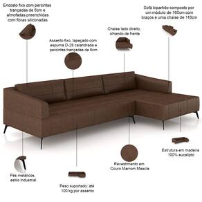 Esse sofá com chaise integrada é um convite irrecusável ao relaxamento - perfeito para esticar as pernas após um longo dia ou acomodar visitas com elegância. Os assentos e encostos generosos, combinados com materiais premium, garantam um apoio suave e duradouro, enquanto a estrutura reforçada assegura resistência sem igual. Além disso, por ser um sofá de couro a durabilidade e fácil manutenção estão garantidas, adaptando-se ao seu estilo de vida.