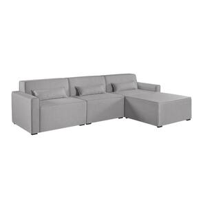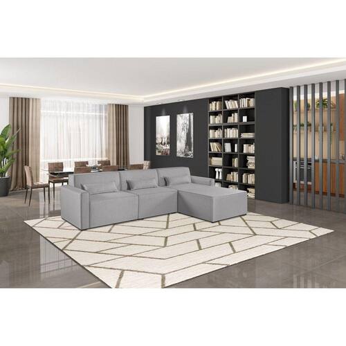 Sofá 3 Lugares com Puff 298cm Linho Lutz Yescasa Gelo - Cinza