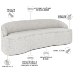 Color: Creme | ColorFamily: Creme | ColorSimple: Creme | ColorSupplier: Creme | Material: Madeira | MaterialFamily: Madeira | Model: Lótus | OriginCountry: Nacional | OriginState: PR | ProductContents: 01 Sofá | ProductHeight: 85 cm | ProductInstructions: Produto para uso em ambiente interno, nao devendo ficar exposto ao sol, calor e umidade excessivos. | ProductLength: 100 cm | ProductWarranty: 90 dias após o recebimento do produto | ProductWeight: 40 kg | ProductWidth: 180 cm | SizeDescription: Altura: 85 cm Largura: 180 cm Profundidade: 100 cm | SupplierSimpleName: Sofá 3 Lugares Curvo Sala de Estar Living Lótus D02 Bouclê Creme 180 cm B-54 - Lyam Decor