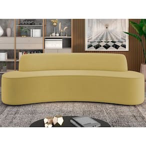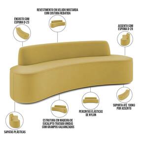 Sofá 3 Lugares Curvo Sala de Estar Living Cancún D02 Veludo Mostarda 210 cm C-279 - Lyam Decor
