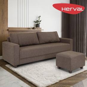 Madeira de Eucalipto de reflorestamento, grampos de aço e fixo com cola PVASofá 3 Lugares e Puff Herval Clean Linho Marrom, 200 cm