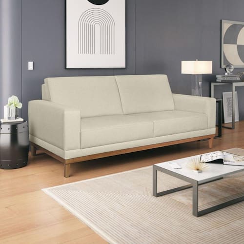 Sofá Cronus 3 Lugares 200 cm, estrutura de madeira de eucalipto proveniente de reflorestamento, montagem com grampos galvanizados,encosto fixo com cintas elásticas e espuma soft plumante, assento fixo com cintas elásticas e espuma D26 plumante suporta até 110 kg por assento, e braças com espuma D20. Revestimento em linho 66% algodão e 34% poliester. Base e pés de madeira. Acompanha Almofadas extras: Não Almofada do assento: Fixa Almofada do encosto: Fixa Altura do assento até o chão: 43 cm Altura do Encosto: 50 cm Altura dos Pés: 12 cm Ambiente Principal: Sala de Estar Cor: Cru Cor do Produto: Cru Densidade do Assento: D-26 Densidade do Encosto: D-23 Enchimento do Assento: Espuma Enchimento do Encosto: Espuma Estilo de Braço: Braços Quadrados Firmeza do Assento: Médio Itens Inclusos: 1 Sofá Material dos Pés: Madeira Necessita Montagem: Não Origem do Produto: Nacional Peso: 45 kg Pet Friendly: Não Possui Percintas Elásticas: Sim Possui Pés: 05 Possui Rodízio: Não Recomendações de Uso, Manutenção e Limpeza: Aspirador de pó em baixa rotação Revestimento do Braço: Linho Suporta Até (kg): 100 kg Tecido Predominante: Linho Tipo de Encosto: Fixo Tipo de Mola: Não Possui