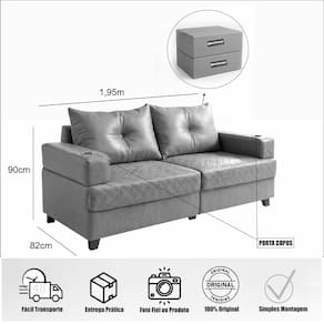 Medidas: Altura 90 cm / Comprimento 1,95 m / Profundidade 82 cm