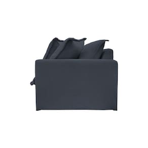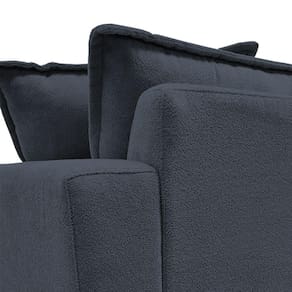 Sofá 3 Lugares Fixo Bouclé Azul Marinho Vegas Premium Base em Madeira Maciça