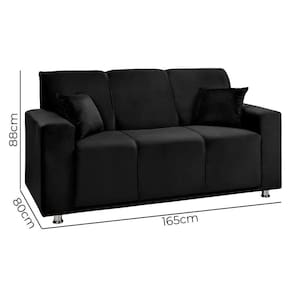 Um Sofa Classico, com revestimento em tecido de alta qualidade no encosto, nos bracos e nas almofadas que acompanham o produto. Seus pes sao produzidos com o material em PVC e com pintura cromada. O sofa possui 1,65 metros de largura. Perfeito para trazer muito conforto e aconchego para o seu lar.