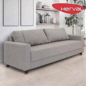 Sofá 3 Lugares Herval Clean Linho Cinza, 200 cm