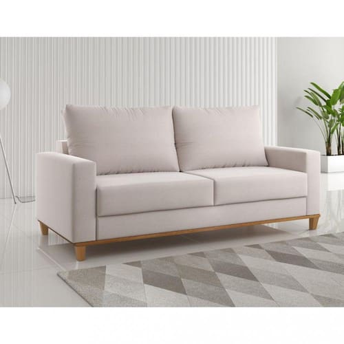 Sofá 3 Lugares Linho 180cm Vicente Viero Móveis - Bege Claro