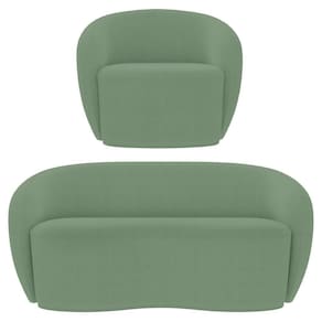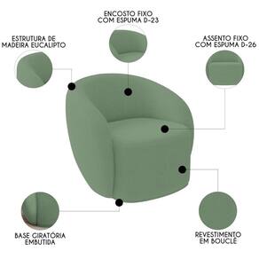 O Sofá 3 Lugares Living 180cm e 1 Poltrona Giratória Garbin K04 Bouclê Verde, da Mpozenato tem um Design Orgânico, combinando estética e funcionalidade com uma consciência ecológica.