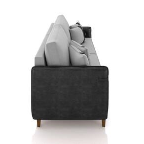 O Sofá 3 Lugares Living Valença é a escolha perfeita para quem busca um equilíbrio entre conforto e elegância em um espaço compacto. Com medidas de 192 cm, este sofá se destaca pelo design sofisticado e pela qualidade de seus materiais. O sofá é revestido em tecido sintético PU na cor Preta, com um acabamento em Veludo Cinza que proporciona um toque de sofisticação e aconchego. O sofá é fabricado com madeira de reflorestamento tratada, especificamente eucalipto. Já os pés são de madeira na cor castanho, com acabamento elegante que complementa o visual geral do móvel. O sofá possui assento e encosto fixos, garantindo uma estrutura sólida e sem movimento. A espuma utilizada é a D-28, conhecida por sua durabilidade e conforto. O assento é fixo, que garante um suporte firme e duradouro. Ele é equipado com molas espirais e percintas elásticas, além de uma manta acrílica que oferece um conforto extra. Este assento é projetado para suportar até 150 kg, garantindo robustez e estabilidade. O encosto é fixo e conta com percintas elásticas que sustentam almofadas soltas preenchidas com 100% fibra siliconada, proporcionando um apoio macio e confortável para as costas. Além do mais, as almofadas do encosto do sofá são adornadas com uma fita em sintético PU que segue a mesma tonalidade do revestimento, na cor Preta. Este detalhe não apenas realça o design do sofá, mas também oferece uma finalização elegante e refinada. Os braços do sofá são preenchidos com espuma D-23, o que proporciona um suporte confortável e equilibrado. A estrutura dos braços complementa o design do sofá, oferecendo uma superfície acolhedora para descansar os braços. Para garantir a durabilidade e resistência, os pontos de tensão do sofá são fixados com grampos galvanizados antiferrugem ou aparafs, garantindo que o móvel mantenha sua integridade ao longo do tempo. A combinação desses materiais assegura um suporte ergonômico, ideal para relaxar após um longo dia. Invista no conforto e na sofisticação que você merece, o Sofá Valença está esperando por você!