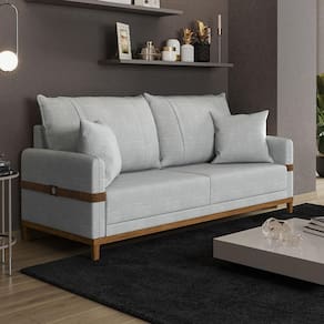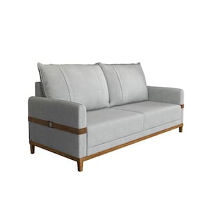 MODELO: Sofá 3 Lugares 2m Living Com Almofadas Pés Madeira Linho Kazu