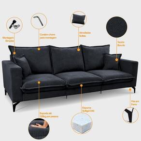 Sofá 3 Lugares Modular Boma. 2,40m Boucle Sofá Inbox Cinza Escuro