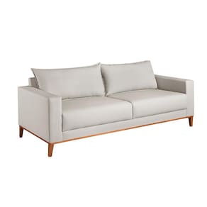 ESPECIFICAÇÕES TÉCNICAS: - Material da Estrutura: Madeira de reflorestamento; - Material do Assento: Espuma D28/Manta de espuma D20 soft/Persintas elásticas; - Material do Encosto: Fibra siliconada/Espuma/Manta acrílica; - Revestimento: Tecido Bege; - Almofada dos Assento: Fixas com espuma D26; - Almofada do Encosto: soltas preenchidas 100% com fibra siliconada; - Tipo de Encosto: Fixo; - Tipo de Assento: Fixo; - Tipo de pé: Fixo; - Material dos pés: Madeira; - Possui Regulagem de Inclinação? Não; - Quantidade Lugares: 3 Lugares; - Garantia: 3 meses contra defeitos de fabricação; - Dimensões do Produto (LarguraXProfundidadeXAltura):215x84x89cm
