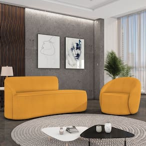 O Kit Sofá 3 Lugares Orgânico 180cm Morgan e Poltrona Lua é um verdadeiro convite ao relaxamento! Ele possui um design orgânico que remete às formas encontradas na natureza que além de se moldar ao corpo humano, evoca uma sensação de calma e equilíbrio criando um espaço acolhedor e relaxante. O revestimento desse maravilhoso conjunto conta com um tecido extremamente elegante no Bouclê Mostarda, suportando em média até 240 kg de peso, podendo ser utilizado por pessoas de diferentes biotipos. A Poltrona Lua contém uma simetria artística e curvas suaves, ela contém uma Base Giratória com giro em 360 graus e uma estrutura em madeira de reflorestamento eucalipto, que garante a resistência e a sustentabilidade do produto. Ela tem um acabamento reforçado e espuma de qualidade D23, que oferece maciez e conforto. Ela contém detalhes de costura no encosto e um assento cilíndrico arredondado resultando em um acabamento perfeito conferindo muito mais valor e personalizado ao produto, oferecendo maior liberdade de movimento ao cliente. O Sofá Morgan por sua vez é uma combinação perfeita de conforto e estilo. Com uma estrutura robusta de madeira de eucalipto e MDF, este sofá garante durabilidade e resistência. Os assentos e encostos são fixos, o encosto é preenchido com espuma D-20, proporcionando suporte ideal para suas costas, enquanto o assento com espuma D-23 oferece uma experiência de assento firme e aconchegante. Seu formato curvo e sem braços traz um toque de modernidade, permitindo que o sofá se encaixe harmoniosamente em diversos estilos de decoração, desde o minimalista até o mais ousado. As sapatas plásticas são pequenas proteções colocadas na base dos pés do sofá para evitar que eles risquem ou danifiquem o chão. Além de proteger o piso, essas sapatas ajudam a distribuir o peso do sofá de maneira mais uniforme. Esse lindo conjunto pode ser utilizado em salas de estar, recepções, escritórios, lojas, espaços comerciais, ou qualquer outro espaço que você queira decorar com estilo e bom gosto. O kit Sofá Morgan e Poltrona Lua é um produto que vai fazer a diferença na sua decoração e no seu bem-estar. Ele vai trazer charme, conforto e durabilidade para o seu ambiente. Corra e garanta o seu agora mesmo!