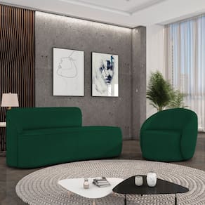 O Kit Sofá 3 Lugares Orgânico 180cm Morgan e Poltrona Lua é um verdadeiro convite ao relaxamento! Ele possui um design orgânico que remete às formas encontradas na natureza que além de se moldar ao corpo humano, evoca uma sensação de calma e equilíbrio criando um espaço acolhedor e relaxante. O revestimento desse maravilhoso conjunto conta com um tecido extremamente elegante no Bouclê Verde, suportando em média até 240 kg de peso, podendo ser utilizado por pessoas de diferentes biotipos. A Poltrona Lua contém uma simetria artística e curvas suaves, ela contém uma Base Giratória com giro em 360 graus e uma estrutura em madeira de reflorestamento eucalipto, que garante a resistência e a sustentabilidade do produto. Ela tem um acabamento reforçado e espuma de qualidade D23, que oferece maciez e conforto. Ela contém detalhes de costura no encosto e um assento cilíndrico arredondado resultando em um acabamento perfeito conferindo muito mais valor e personalizado ao produto, oferecendo maior liberdade de movimento ao cliente. O Sofá Morgan por sua vez é uma combinação perfeita de conforto e estilo. Com uma estrutura robusta de madeira de eucalipto e MDF, este sofá garante durabilidade e resistência. Os assentos e encostos são fixos, o encosto é preenchido com espuma D-20, proporcionando suporte ideal para suas costas, enquanto o assento com espuma D-23 oferece uma experiência de assento firme e aconchegante. Seu formato curvo e sem braços traz um toque de modernidade, permitindo que o sofá se encaixe harmoniosamente em diversos estilos de decoração, desde o minimalista até o mais ousado. As sapatas plásticas são pequenas proteções colocadas na base dos pés do sofá para evitar que eles risquem ou danifiquem o chão. Além de proteger o piso, essas sapatas ajudam a distribuir o peso do sofá de maneira mais uniforme. Esse lindo conjunto pode ser utilizado em salas de estar, recepções, escritórios, lojas, espaços comerciais, ou qualquer outro espaço que você queira decorar com estilo e bom gosto. O kit Sofá Morgan e Poltrona Lua é um produto que vai fazer a diferença na sua decoração e no seu bem-estar. Ele vai trazer charme, conforto e durabilidade para o seu ambiente. Corra e garanta o seu agora mesmo!