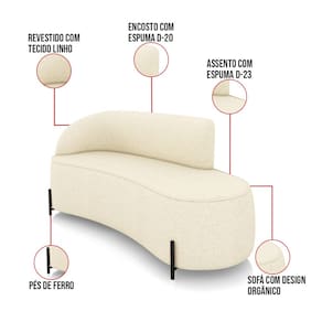 Sofá 3 Lugares Orgânico 180cm Pé Ferro Preto Morgan Linho Bege D03 - D`Rossi