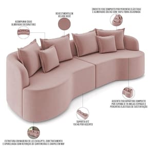 Estilo: Moderno | Cor: Rosê | Unidades por kit: 01 Sofá | SupplierSimpleName: Sofá 3 Lugares Orgânico Sala De Estar Living 250cm Ekos K01 Veludo Rosê - Lyam Decor | Requer montagem: Não | Altura: 95 cm | Tipo de produto: Sofá | Color: Rosê | Peso máximo suportado: 150 Kg | Peso: 68 kg | Orientação do Sofá: na | ColorSimple: Rosê | Material do estofamento: Madeira, MDF, Veludo e Espuma | ColorFamily: Rosê | Mecanismo de abertura do produto: na | ColorSupplier: Rosê | Linha: Sala de Estar living | Fabricante: Lyam Decor | Material de enchimento do encosto: Percintas elásticas e 04 almofadas soltas com 100% fibra siliconada. | Formato do sofá: Curvo | Desenho do tecido: Liso | Densidade da espuma do assento: D-26 | Material: Estrutura em Madeira, MD, Revestimento em Veludo e Espuma | Model: Ekos | Largura: 250 cm | ProductWarranty: 107 dias após o recebimento do produto | Cor dos pés: Tabaco | MaterialFamily: Madeira, MDF, Veludo e Espuma | ProductWidth: 250 cm | ProductHeight: 95 cm | ProductContents: 01 Sofá | OriginCountry: Brasil | ProductWeight: 68 kg | OriginState: PR | SizeDescription: Altura: 95 cm x Largura: 250 cm x Profundidade: 103 cm | Profundidade: 103 cm | Quantidade de Caixas de embalagem: 1 | ProductLength: 103 cm | ProductInstructions: Produto para uso em ambiente interno, nao devendo ficar exposto ao sol, calor e umidade excessivos.