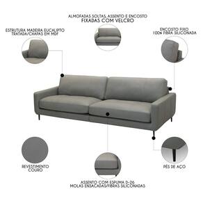 SupplierSimpleName: Sofá 3 Lugares Para Sala 210cm Alicie L08 Couro Cinza Claro - Mpozenato | Cor: Cinza Claro | Profundidade: 93 cm | Largura: 210 cm | Manual: Sim | Model: Alicie | Peso: 69 kg | Gênero: Unisex | Origem: | Requere montagem: Sim | Color: Cinza Claro | ColorFamily: Cinza Claro | ColorSimple: Cinza Claro | ColorSupplier: Cinza Claro | ProductWidth: 210 | ProductLength: 93 | ProductWeight: 69 | SizeDescription: 86 x 210 x 93 cm | ProductWarranty: 90 dias após o do produto | ProductInstructions: Produto para uso em ambiente interno, nao devendo ficar exposto ao sol, calor e umidade excessivos. | ProductContents: 1 Sofá | AssemblyRequired: Sim, sugerimos a contratação do nosso de montagem (para os CEPs em que o está dispon | OriginCountry: | OriginState: PR | Marca: Mpozenato | Tipo de Garantia: Fabricante | Peso Suportado: 240 Kg | ProductHeight: 86 | Altura: 86 cm