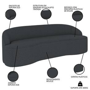 Com design curvo e incrivelmente moderno, o Sofá 3 Lugares para Sala de Estar Living 180cm Theo D06 Bouclê Cinza Escuro, da Mpozenato, é ideal para a sua sala de estar ou living, pois é uma ótima opção para quem busca um estofado confortável, sem abrir mão do estilo e funcionalidade.