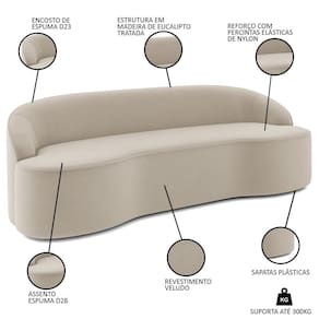 Com design curvo e incrivelmente moderno, o Sofá 3 Lugares para Sala de Estar Living 210cm Theo D06 Veludo Creme, da Mpozenato, é ideal para a sua sala de estar ou living, pois é uma ótima opção para quem busca um estofado confortável, sem abrir mão do estilo e funcionalidade.