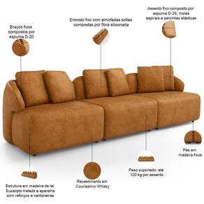 Model: Arlo | ProductContents: 01 Sofá | SupplierSimpleName: Sofá 3 Lugares Para Sala de Estar Living 234cm Arlo F04 Couríssimo Whisky - Lyam Decor | ProductLength: 87 cm | ProductInstructions: Produto para uso em ambiente interno, nao devendo ficar exposto ao sol, calor e umidade excessivos. | Quantidade de Caixas de embalagem: 3 | Peso: 130 kg | Peso máximo suportado: 360 kg | Linha: Sala de Estar, Living | ColorSimple: Marrom Escuro | Largura: 234 cm | Orientação do Sofá: Linear | ColorFamily: Marrom Escuro | Unidades por kit: 1 | Requer montagem: Não | Cor: Whisky | Altura: 87 cm | Mecanismo de abertura do produto: na | Color: Marrom Escuro | Material de enchimento do encosto: Fibra Siliconada | Formato do sofá: Orgânico | ProductHeight: 87 cm | Tipo de produto: Sofá Modulado | Material do estofamento: Couríssimo | Estilo: Moderno | Fabricante: Lyam Decor | ProductWidth: 234 cm | Densidade da espuma do assento: D-26 | ProductWeight: 130 kg | Desenho do tecido: Liso | ProductWarranty: 90 dias após o recebimento do produto | OriginCountry: Brasil | OriginState: PR | SizeDescription: Altura: 87 cm x Largura: 234 cm x Profundidade: 87 cm | ColorSupplier: Whisky | Cor dos pés: Marrom Escuro | MaterialFamily: Madeira de Eucalipto | Material: Madeira de Eucalipto, Cantoneiras, Chapas em MDF | Profundidade: 87 cm