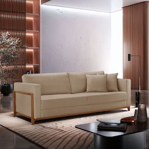 O Sofá Paris é a escolha ideal para quem deseja unir elegância e conforto em seu ambiente. Com capacidade para três pessoas, ele oferece amplo espaço para relaxar, seja na sala de estar ou no home theater. Sua base em madeira, com acabamento refinado, adiciona um toque de sofisticação e resistência, enquanto o design clean e moderno se adapta facilmente a diferentes estilos de decoração.