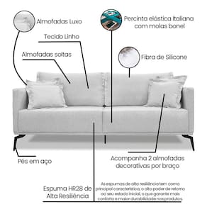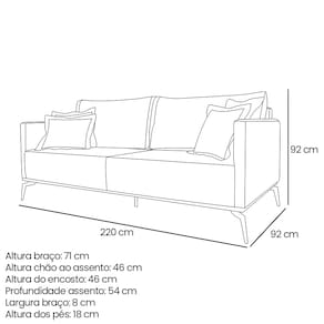O Sofá 3 Lugares Rafaela é uma mobília que combina elegância, conforto e durabilidade. Ele tem um design moderno e sofisticado, com pés em aço carbono, e revestimento em tecido Linho, que harmonizam com qualquer ambiente. Ele é ideal para sala de estar, recepções ou qualquer outro espaço que você queira decorar com estilo e bom gosto. Ele tem uma estrutura em madeira de reflorestamento eucalipto, que garante a resistência e a sustentabilidade do produto. Com medidas de 220 cm ele suporta até 180 kg de peso, podendo ser utilizado por pessoas de diferentes biotipos. Ele tem um acabamento reforçado com espuma de qualidade no encosto D23 e plumante em silicone, que oferece maciez e aconchego. Acompanha Almofadas soltas em fibra de silicone. Ele tem assento Fixo com inúmeras elásticas italiana, molas bonnel e espuma HR 28 e plumante em silicone, que proporcionam flexibilidade e conforto. Tem pés em aço carbono, alt.18 cm, cor preto, que protegem o produto contra corrosão e desgaste. O sofá Rafaela é um produto de alta qualidade, beleza e funcionalidade. Ele é fácil de transportar, pois tem um peso leve e um tamanho compacto. O sofá Rafaela é um produto que vai fazer a diferença na sua decoração e no seu bem-estar. Ela vai trazer charme, conforto e durabilidade para o seu ambiente. Aproveite essa oferta e leve para casa um sofá de qualidade por um preço incrível. Essa é a sua chance de ter um sofá maravilhoso por um preço imperdível. Corra e garanta o seu antes que acabe o estoque.