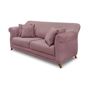 Sofá 3 Lugares Pé De Madeira Julieta 200 Cm Veludo S04 - D`rossi Cor Lilás - Blush