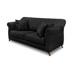 Sofá 3 Lugares Pé De Madeira Julieta 220 Cm Veludo Preto S04 - D'rossi
