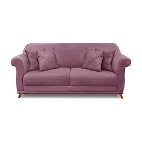 Sofá 3 Lugares Pé De Madeira Julieta 220 Cm Veludo S04 - D`rossi Cor Uva - Blush