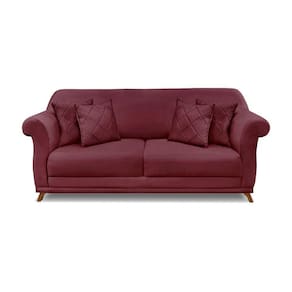 Sofá 3 Lugares Pé De Madeira Julieta 220 Cm Veludo S04 - D'rossi Cor Vinho