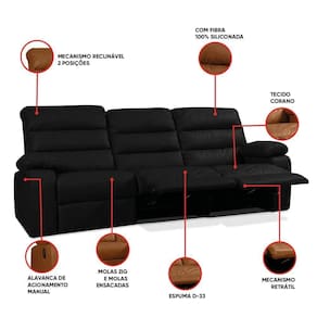 Sofá 3 Lugares Reclinável Retrátil 183cm Naaman Sintético Pu K01 - D'rossi Cor Preto O Sofá 3 Lugares Naaman em revestimento Sintético PU combina conforto, praticidade e design moderno em uma peça elegante de 183 cm. É a escolha ideal para quem busca praticidade, resistência e bem-estar em um só móvel. Sua estrutura é produzida em madeira de eucalipto tratada com reforços em MDF, suportando até 150 kg. O assento possui espuma D-33 com percintas elásticas, molas Zig e ensacadas, oferecendo sustentação firme sem abrir mão da maciez. Já o encosto, preenchido com fibra siliconada, traz a sensação de aconchego que completa a experiência. Os braços também contam com enchimento em fibra 100% siliconada, enquanto o mecanismo retrátil, acionado por alavanca lateral, possibilita ajustar o apoio para os pés e reclinar em 2 posições, proporcionando momentos de relaxamento em qualquer ambiente. Os pés fixos em madeira tabaco, parafusados, dão estabilidade e um toque elegante à peça. O Sofá Naaman oferece sofisticação, mantendo proporções ideal para sala de estar, quarto ou até escritório. Dimensões Gerais (3 módulos): Altura Total: 97 cm Largura Total: 183 cm Profundidade Fechada: 99 cm Peso Total: 60 kg Dimensões por Módulo de Assento: Profundidade Total Aberta: 155 cm Espessura de cada braço lateral: 22 cm Altura do chão ao Assento: 48 cm Largura Livre Assento Lado Esquerdo (com braço): 60 cm Largura Livre Assento Central (sem braço): 63 cm Largura Livre Assento Lado Direito (com braço): 60 cm Profundidade do Assento: 52 cm Altura do Encosto: 70 cm Peso por Módulo: 20 kg Especificações do Produto: Estrutura: Madeira de lei (eucalipto) tratado e chapas em MDF Revestimento: Sintético Pu Espuma do Assento/Encosto: Enchimento em espuma D-33 Material da Espuma: Assento com percintas elásticas, molas Zig e molas ensacadas; Encosto com percintas elásticas. Possui Braços: Sim Material do Braço/Assento e Encosto: Fibra 100% siliconada Tipo de Encosto: Mecanismo Reclinável com 2 posições Tipo de Assento: Mecanismo Retrátil Peso Suportado: Até 150 Kg É Giratória: Não Possui Pés: Sim Tipo de Pés: Fixo Material dos Pés: Madeira na cor tabaco, fixados com parafusos. Diferenciais: Apoio de pés retrátil; Alavanca de acionamento manual posicionada na lateral. Quantidade de Lugares: 3 Lugares Montagem: O produto é enviado montado, requer simples encaixes para instalação. Instruções de Limpeza: Utilizar um pano limpo e levemente úmido Quantidade de Volumes: 3 Caixas Medida das Embalagens: Caixa 1: 101 cm x 97 cm x 87 cm; Caixa 2: 101 cm x 97 cm x 87 cm; Caixa 3: 101 cm x 97 cm x 65 cm Peso Total das Embalagens: 62 kg Entrega: É feita somente até o térreo ou portaria. Confira sempre as medidas das embalagens para assegurar que o produto passe por portas e escadas do local.