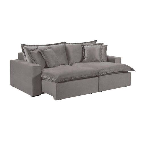 Sofá 3 Lugares Retrátil Com Encosto Fixo Linho M-145 Martins Cinza